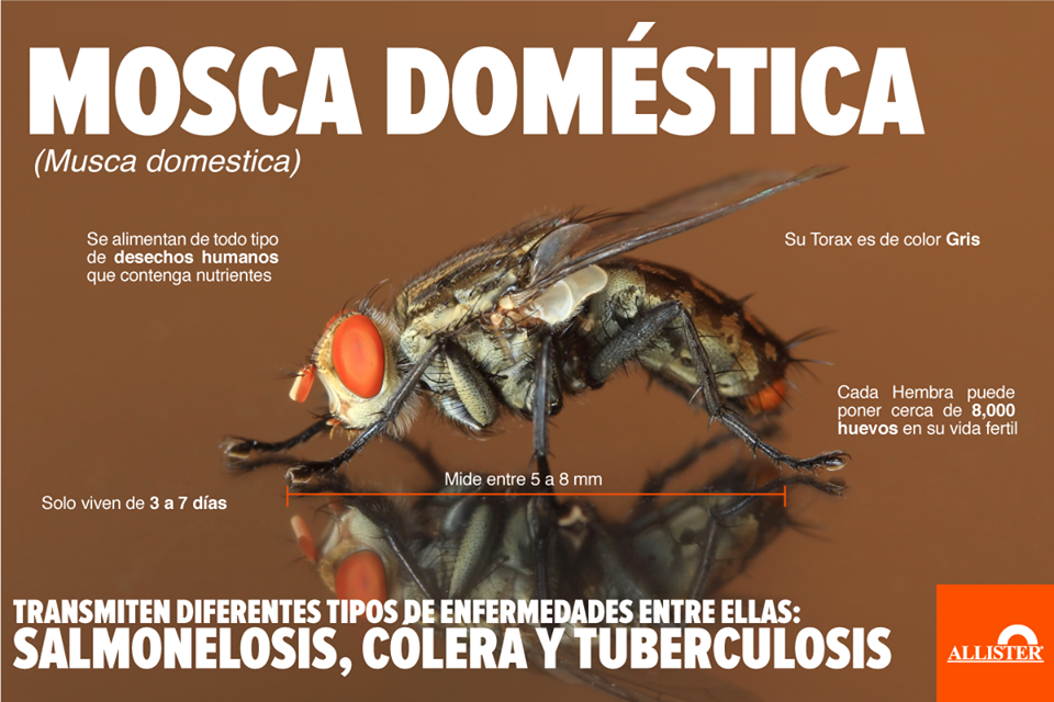 Las moscas son consideradas una plaga porque suponen un riesgo para la salud de personas y animales. Pueden contaminar hogares y negocios y son portadoras de enfermedades como Salmonella y E.coli.